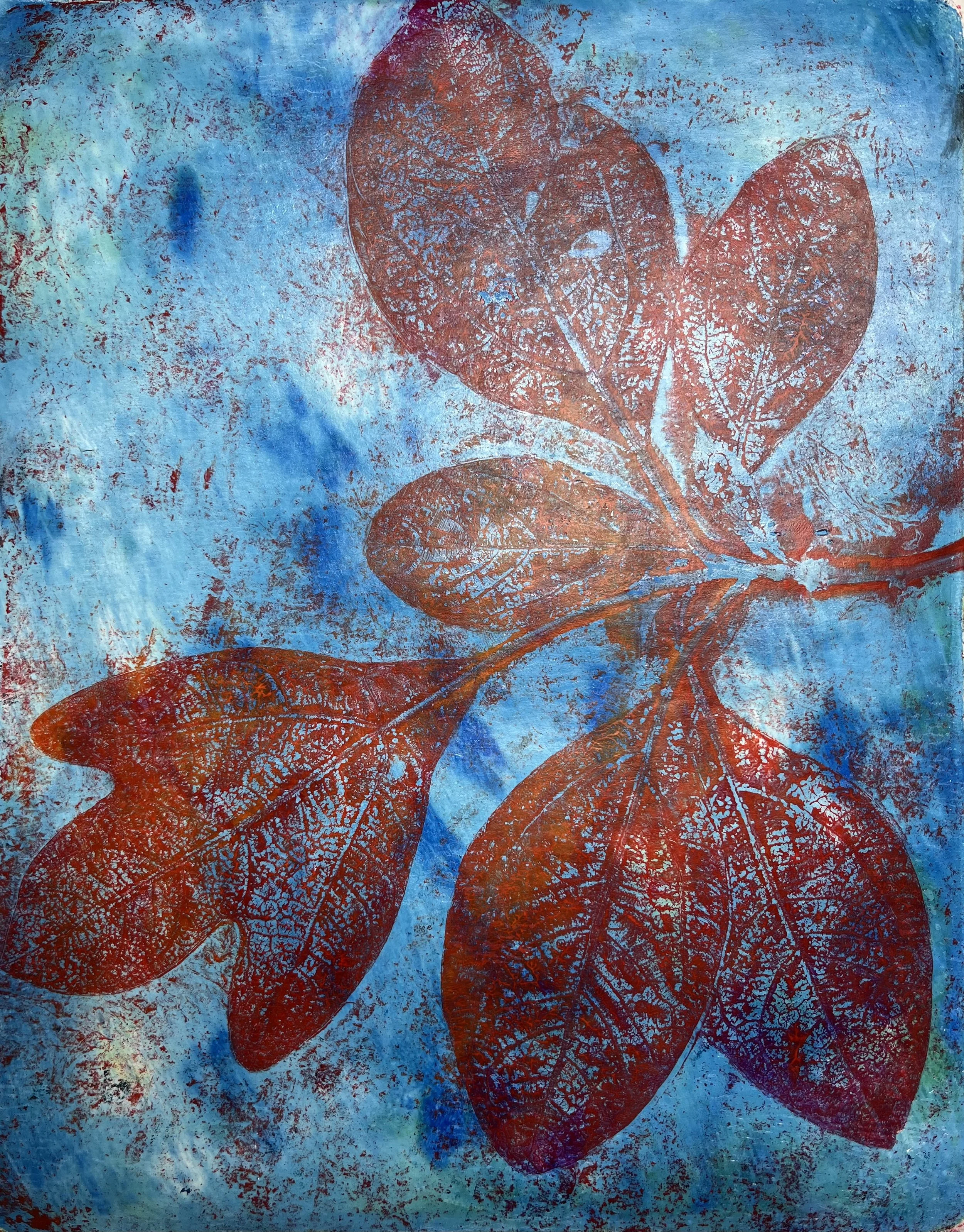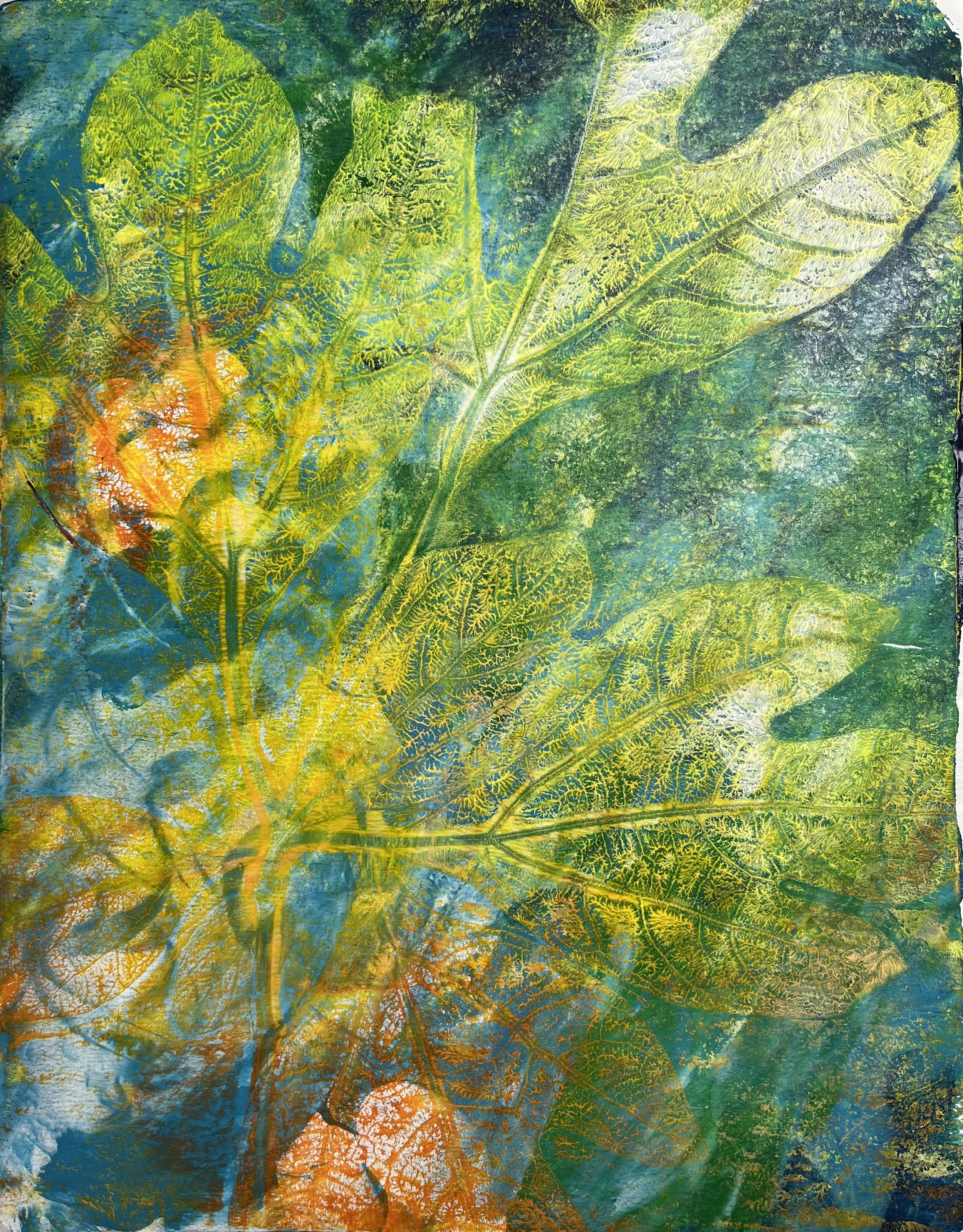 "Fig Leaves" 2024 Acrylic monoprint; 8 x 10"