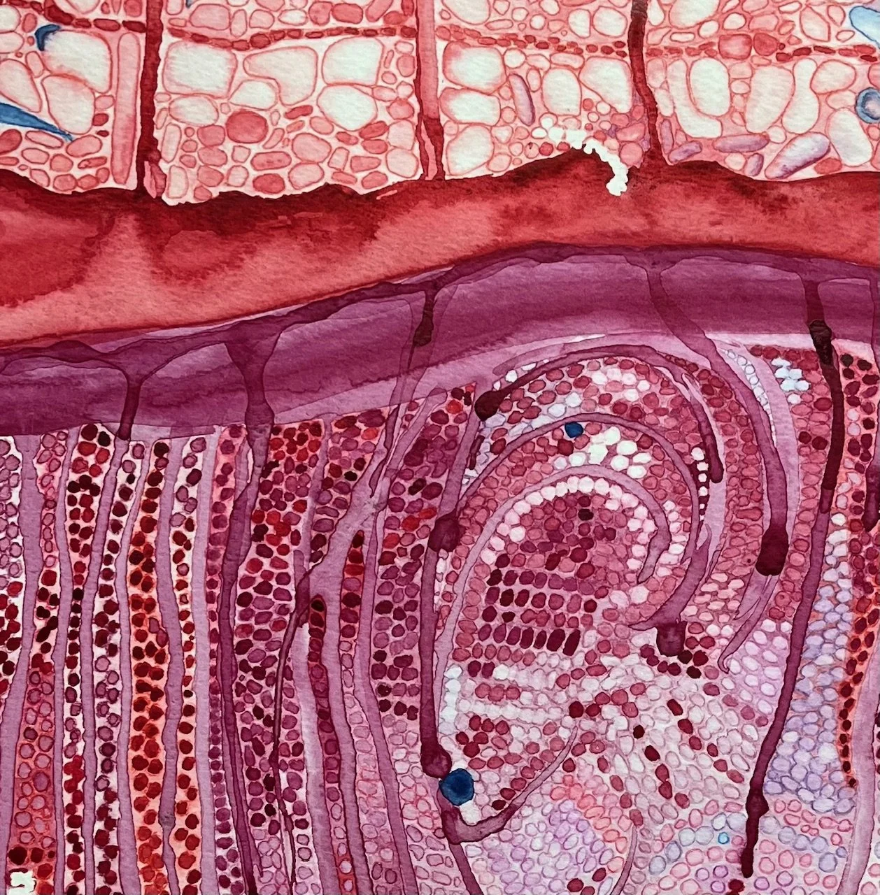 Detail of "Callus" 2025 Watercolor; full work is 18 x 24"
