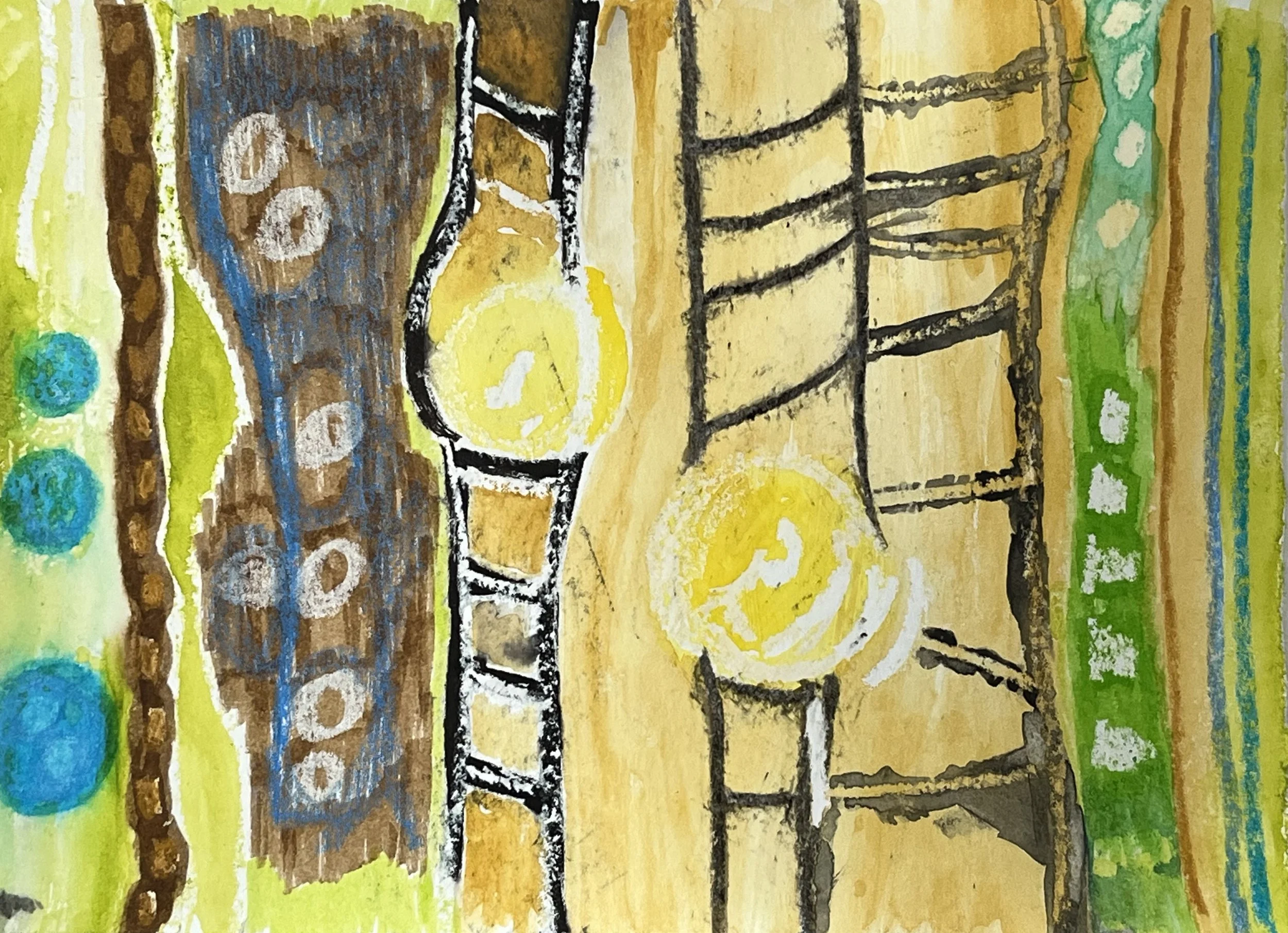 Original SOLD; giclee print available. "Walnut Wood Cells" 2025 Watercolor and pastels; 10 x 14"