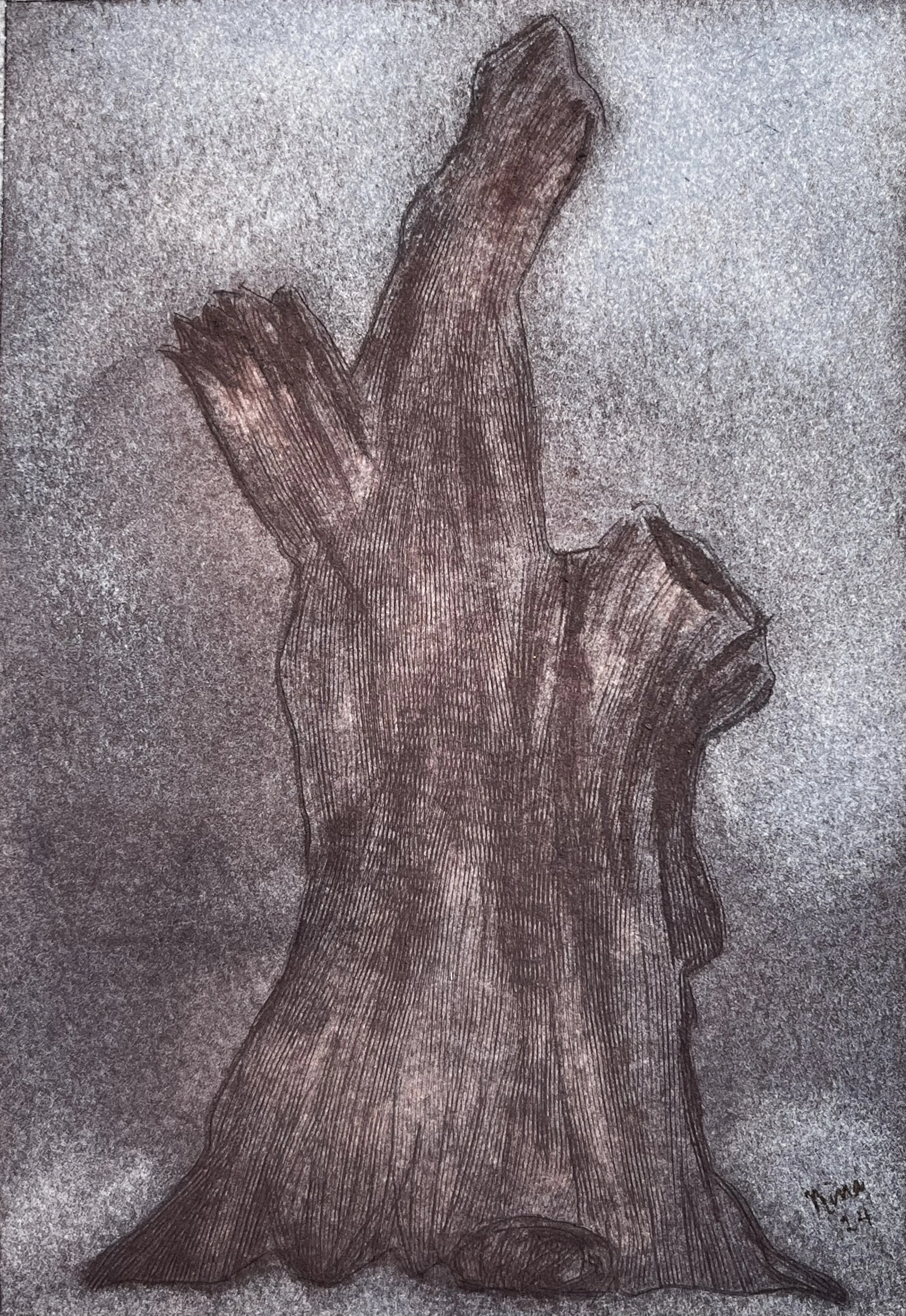 "Wound Wood" 2025 Watercolor; 10 x 14"